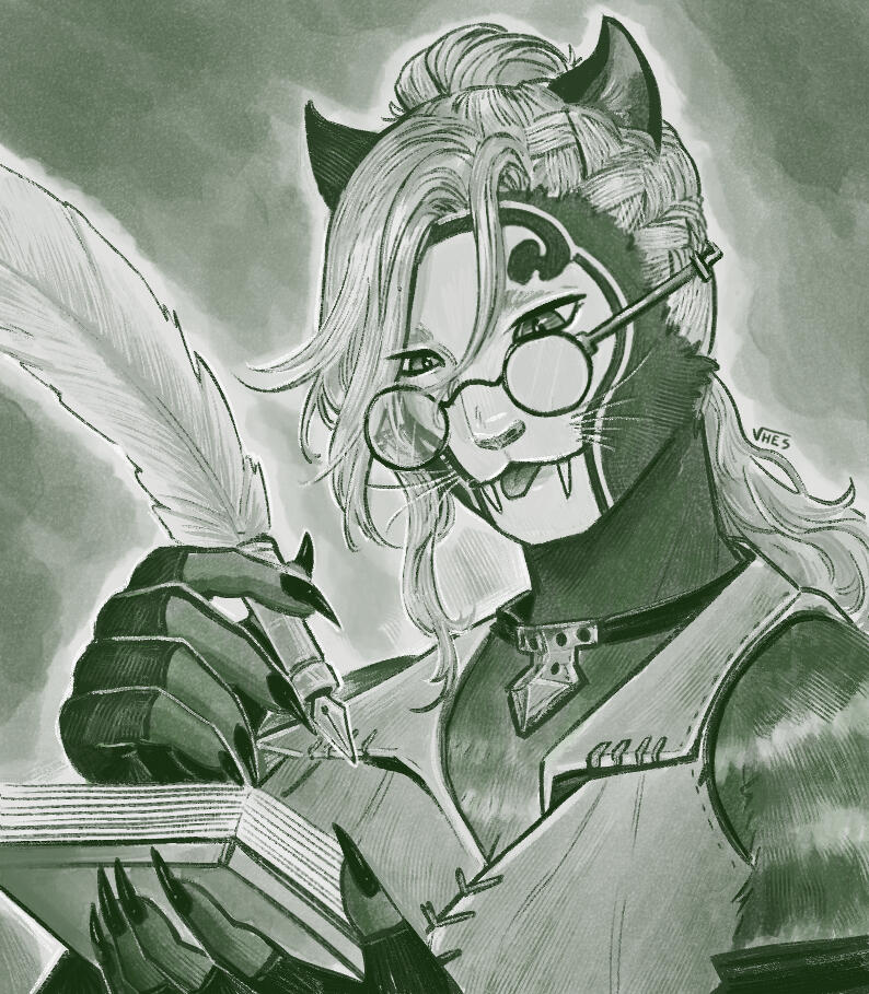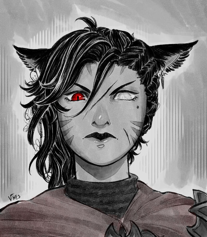 about me ; Hi there ! I'm Vhes, a massive nerd mildly addicted to FF14 and an enthusiastic character illustrator who loves to bring people's OCs to life.